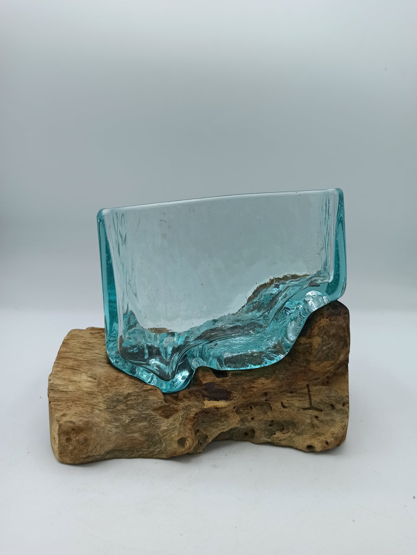 Le Vase en verre fusionné sur bois avec support – Bol moyen est une œuvre d'art unique alliant la transparence et l'élégance du verre fusionné à la résistance et à la chaleur du bois. Chaque pièce est le fruit d'un processus artisanal méticuleux, où le verre est soigneusement fondu et moulé sur un socle en bois sélectionné pour sa texture et sa beauté naturelle. Cette fusion de matériaux crée une pièce décorative unique et irremplaçable, parfaite pour ajouter une touche de sophistication et de nature à n'importe quel espace.