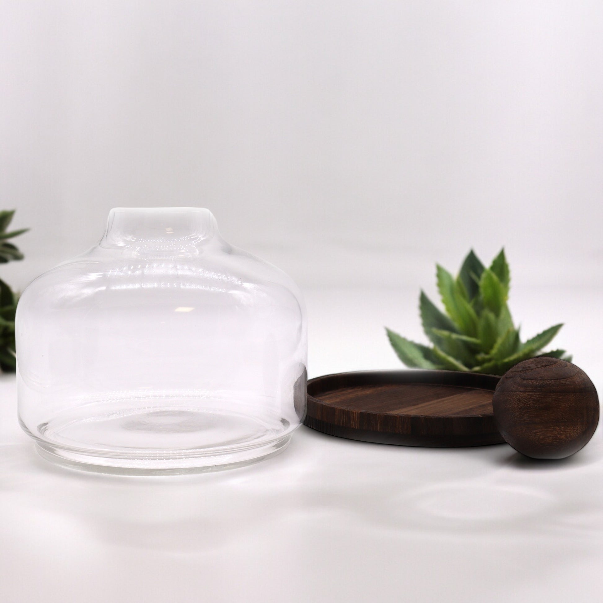 Terrarium extra large en bois de tung foncé avec couvercle sphérique - 23 x 23 cm