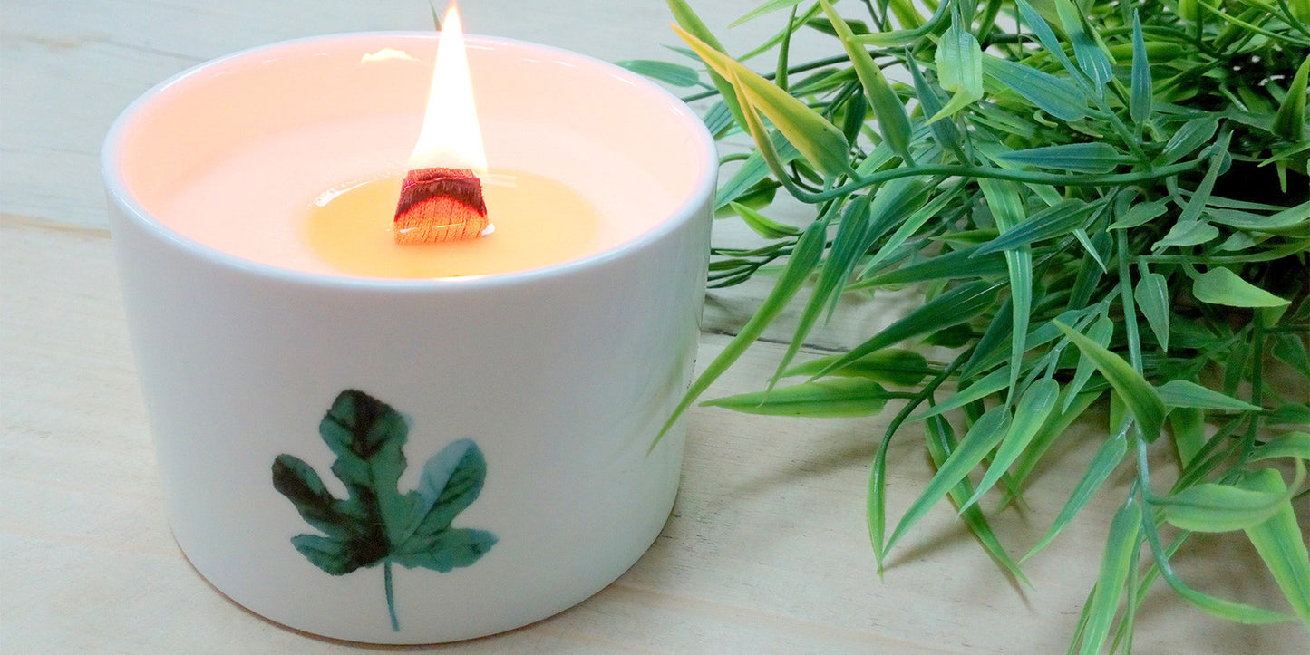 Las velas botánicas se presentan en frascos de cerámica redondos que se pueden reutilizar, codificar con barras y empaquetar muy bien en una caja de presentación. Cada vela contiene una mecha de madera en lugar de una mecha tradicional