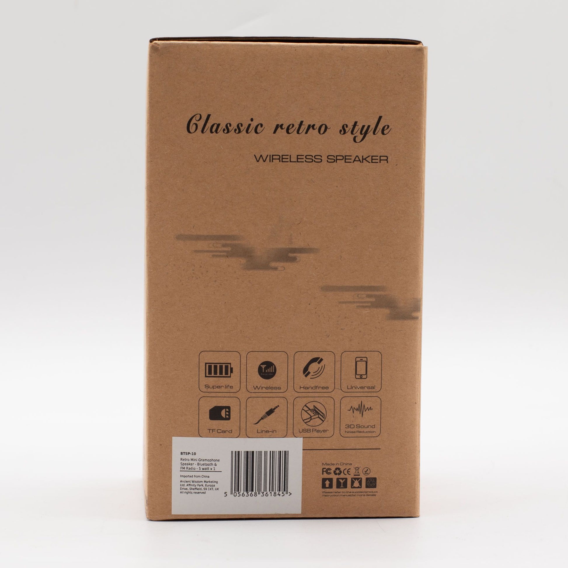 El altavoz incluye un único driver de 5 W y viene con un cable de carga USB y un cable de audio. Su pequeño tamaño lo hace ideal para regalar o añadir carácter a un espacio habitable sin dominarlo. Un práctico accesorio de audio con un toque vintage lúdico.