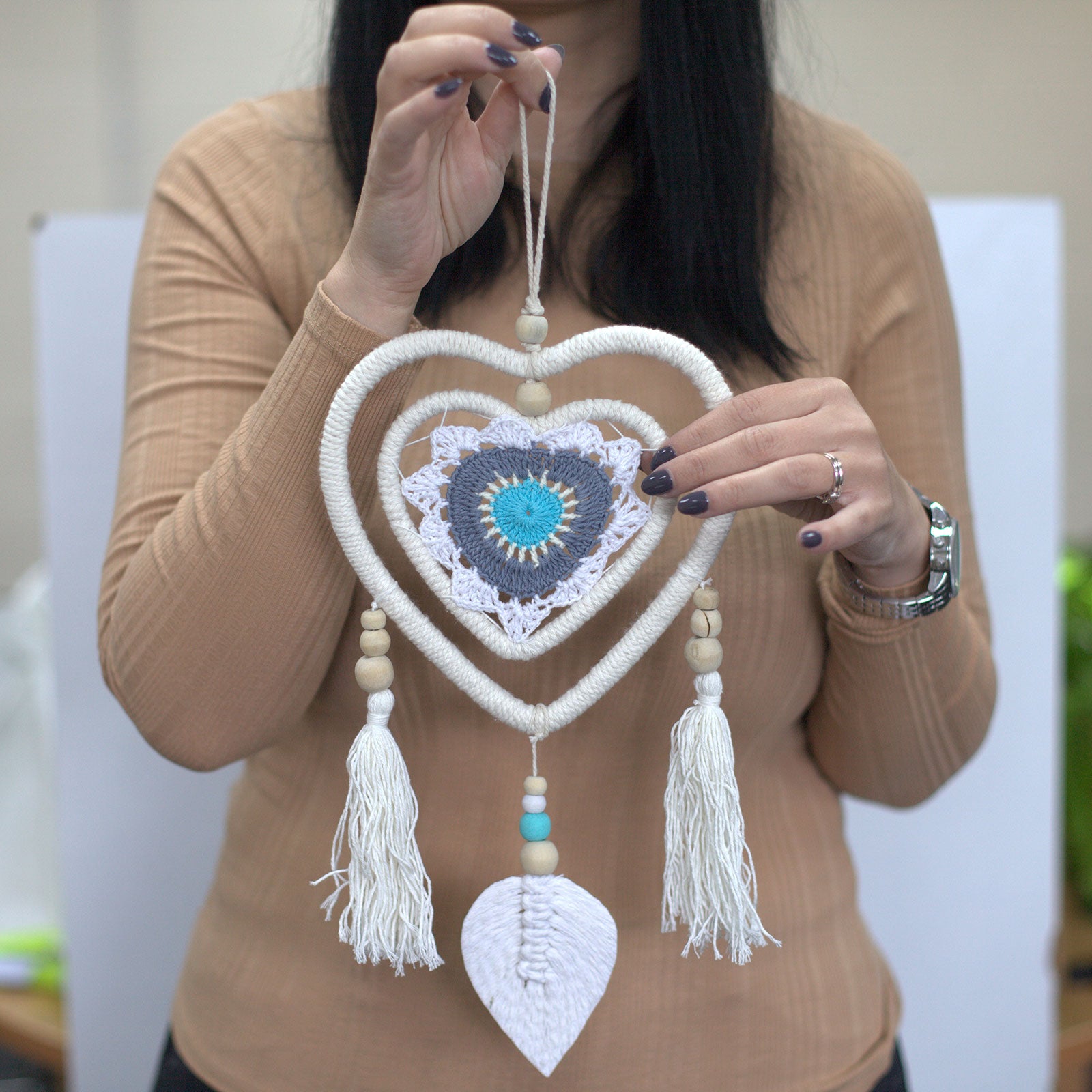 El Atrapasueños - Corazón Azúl Mediano es una obra de arte diseñada para capturar no solo tus sueños, sino también para adornar con elegancia cualquier espacio de tu hogar. Esta pieza única, con su cautivador corazón azul en el centro, te invita a adentrarte en un mundo de tranquilidad y color.