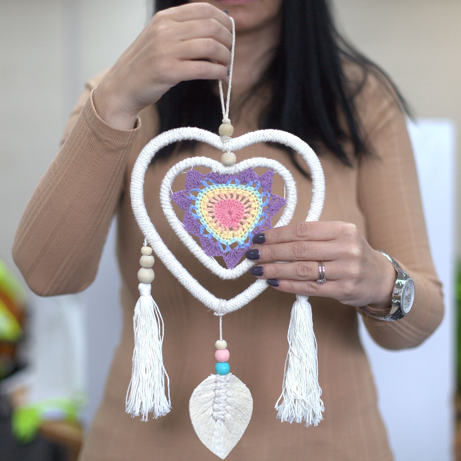 En un mundo donde cada detalle en la decoración de tu hogar cuenta, el Atrapasueños - Corazón Multicolor Mediano emerge como una pieza única, diseñada para capturar no solo los sueños sino también las miradas. Este exquisito adorno, con su diseño en forma de corazón y su paleta de colores vibrantes, infunde amor y positividad en cualquier espacio, convirtiéndolo en el complemento perfecto para tu dormitorio, sala de estar o incluso tu espacio de trabajo.