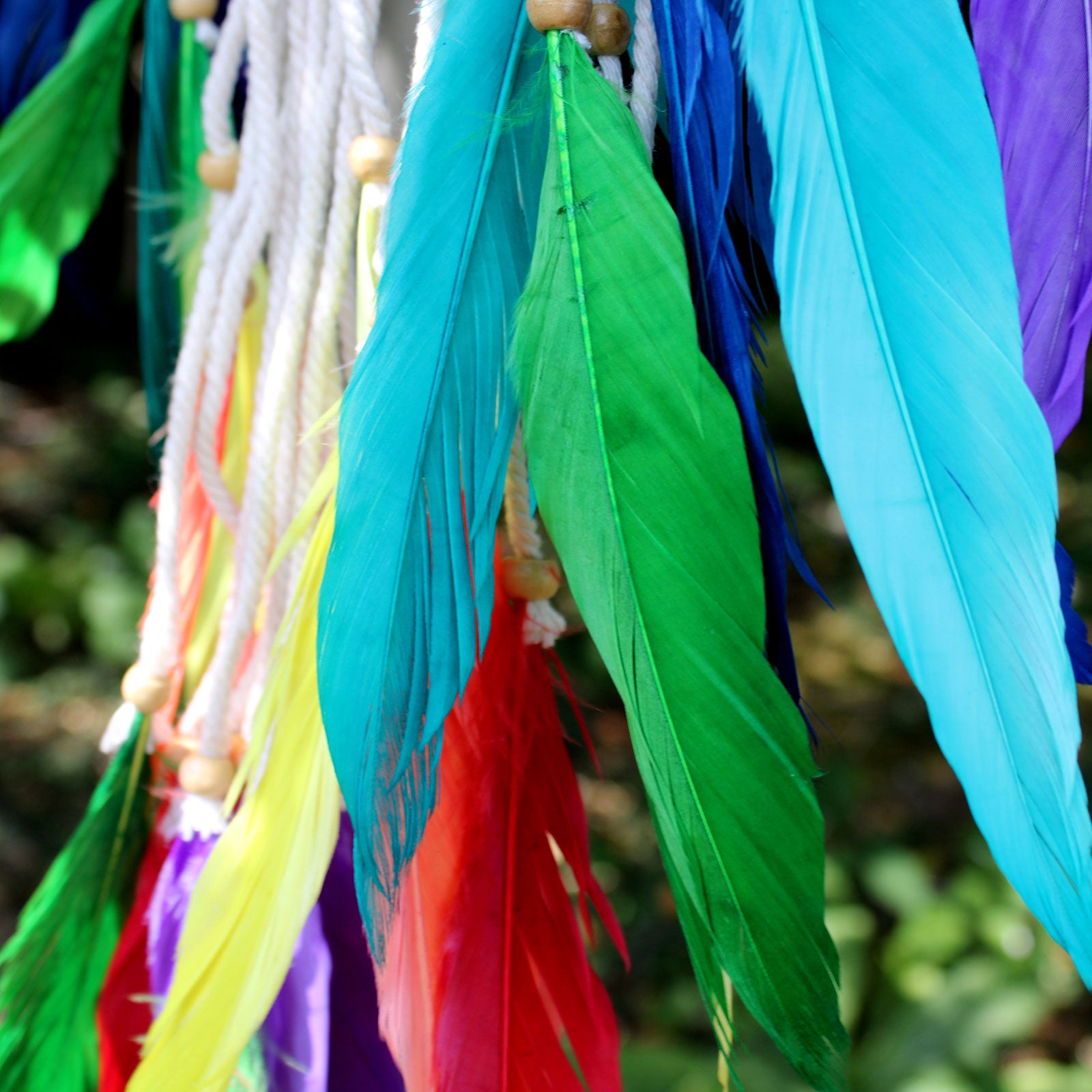 Materiales / Ingredientes: Synthetic suede, feathers and wooden beads
