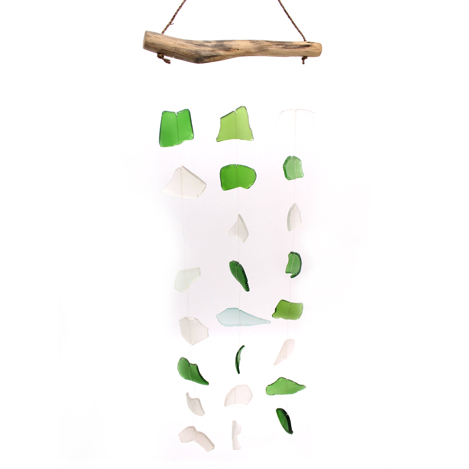 Carillón vidrio reciclado - Tres gotas verde y blanco