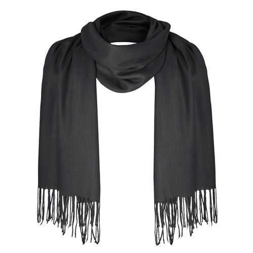 Realizado en poliéster de alta calidad con un suave tacto cashmere, este chal no solo destaca por su apariencia sino también por la sensación de calidez y suavidad que ofrece. Su color negro, sinónimo de elegancia, lo convierte en una pieza versátil capaz de complementar tanto looks casuales como más formales.