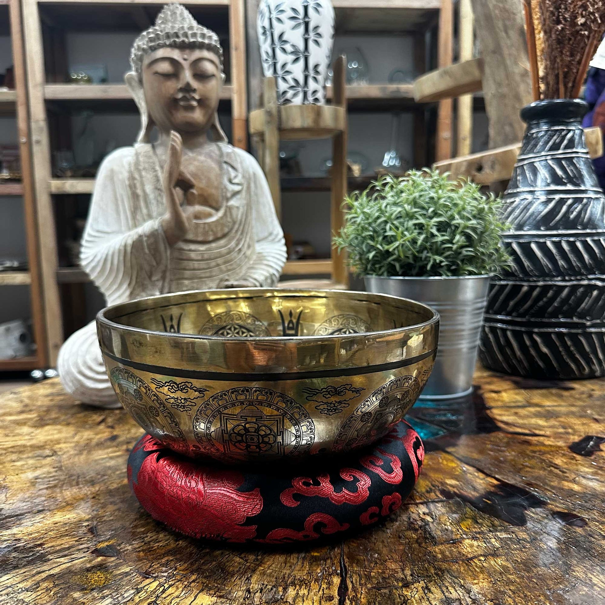 Cada Cojín de aro de 14 cm es una pieza única, elaborada con atención al detalle. Incorporarlo en tu práctica diaria o en tus momentos de tranquilidad en casa, mejora significativamente la experiencia, permitiendo que el sonido fluya de manera más pura y sin interferencias. Haz que tu cuenco tibetano repose sobre un soporte digno de su belleza y resonancia.