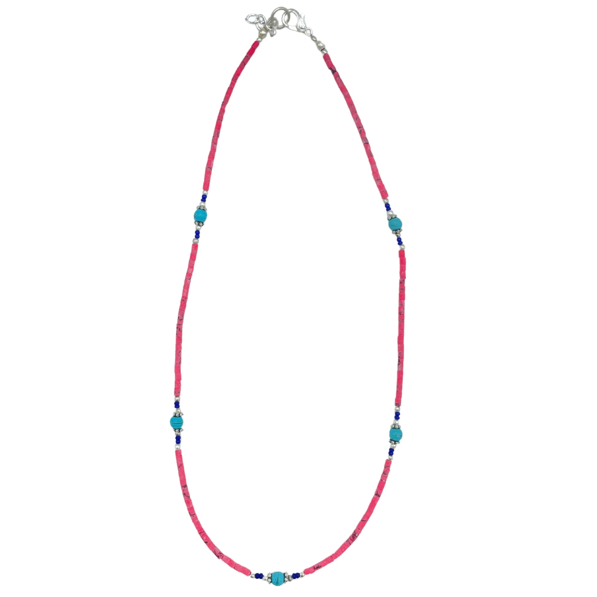 Collar nepalí de gemas extrafinas - cuentas de coral rosa y turquesa