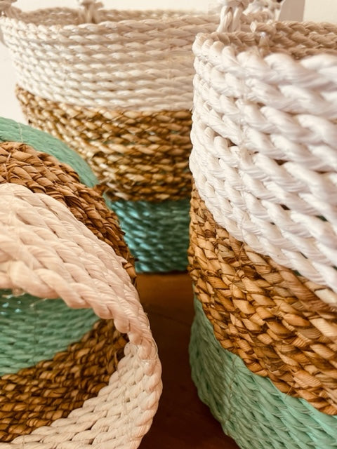 Juego de cestas de algas marinas - Verde/Natural/Blanco