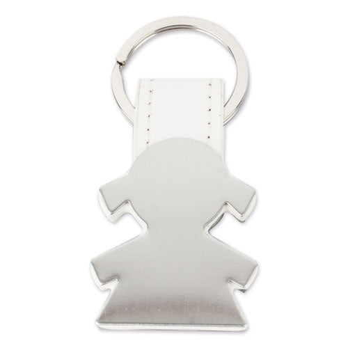 - Llavero metálico con forma de niña que combina funcionalidad y diseño