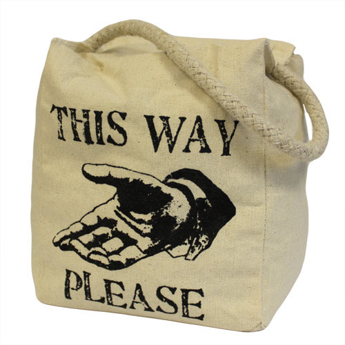 - Diseño minimalista con el mensaje 'This Way Please' que aporta un toque distintivo