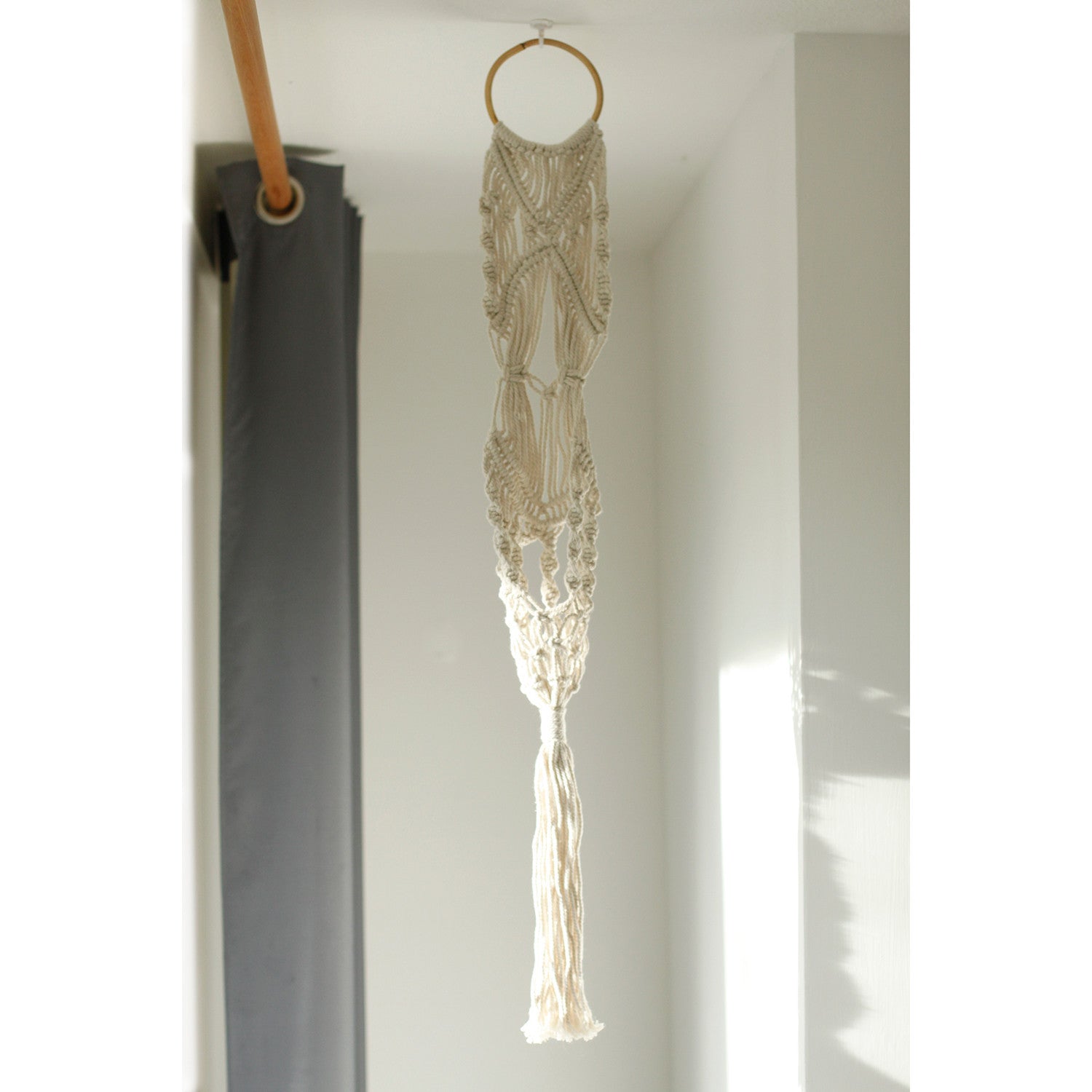 Macetero de Macrame - Largo con Aro de Ratán