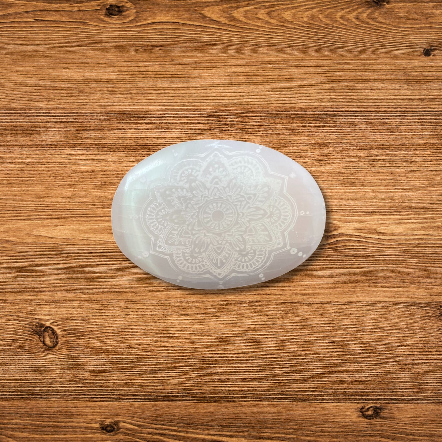 - Piedra de selenita con un mandala grabado