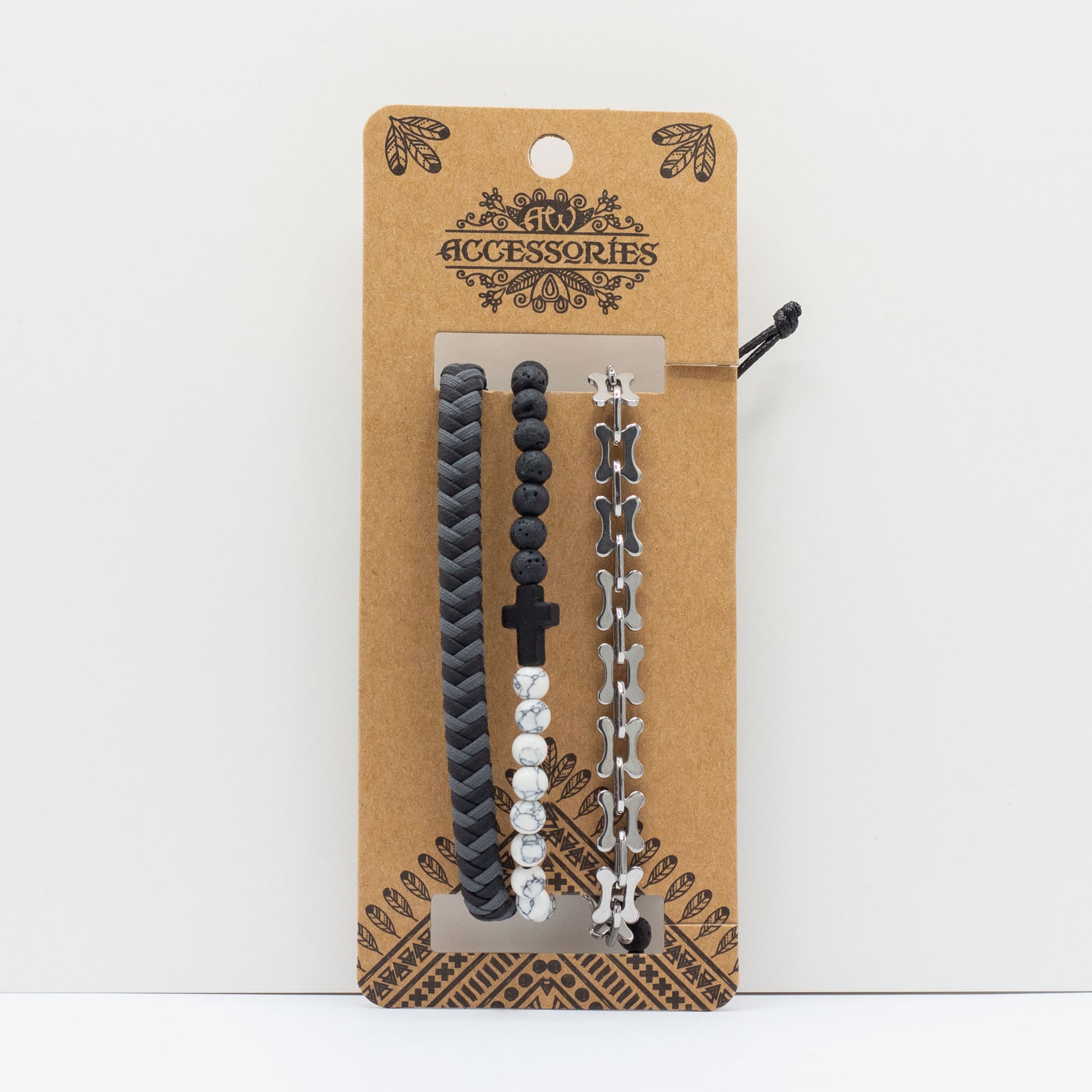 El color negro, sinónimo de elegancia y misterio, juega el papel principal en este conjunto, ofreciendo una flexibilidad incomparable para combinar con distintos colores y texturas de tu vestimenta. Llévalas juntas para un look impactante o por separado para un toque más sutil. El Set de Pulseras para Hombre - Negros de Ciudad te abre las puertas a un mundo de posibilidades estilísticas, elevando tu presencia allá donde vayas.