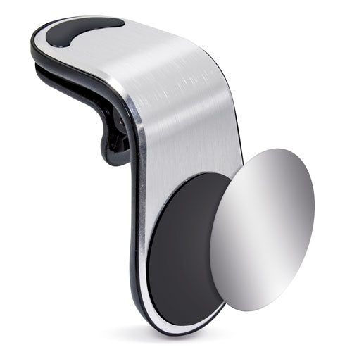 Además, su diseño inteligente permite una instalación rápida y sin obstáculos en la salida del aire, manteniendo el flujo sin interrupciones. Viene complementado con una placa metálica autoadhesiva, que se coloca en la parte trasera de tu móvil, asegurando una compatibilidad perfecta sin afectar su funcionalidad. El sujeta móvil de aluminio plata es práctico, resistente y un must-have para quienes buscan fusionar tecnología con estilo de vida activo.