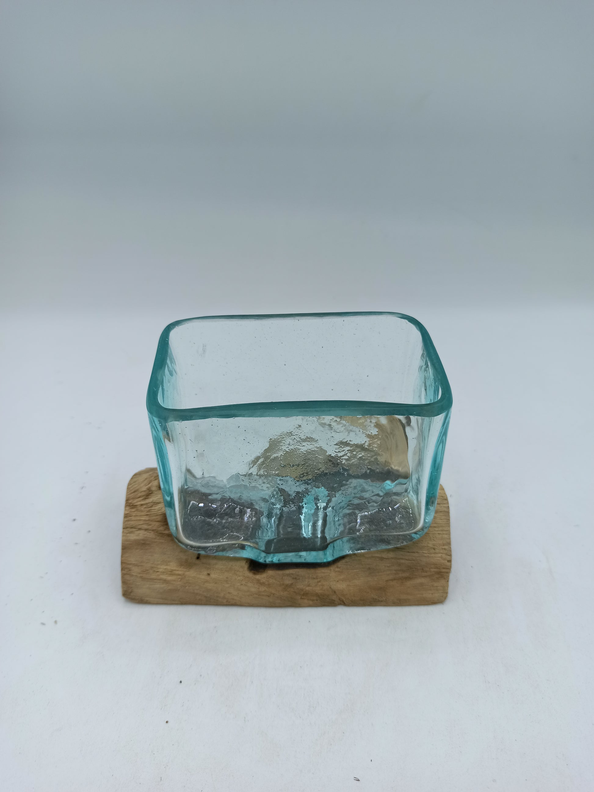 Tanque de vidrio fundido sobre madera con soporte - Cuenco pequeño