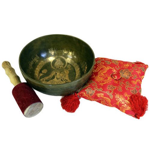 Adéntrate en la espiritualidad y la elegancia con nuestro "Set de Cuenco Especial Tara Dorada de Latón", una expresión sublime de devoción y artesanía excepcional. Este set presenta un cuenco de latón bellamente trabajado, dedicado a Tara, la deidad budista que simboliza la compasión y la protección. La elegante doradura acentúa la belleza intrínseca del latón, creando una obra maestra que no solo es visualmente impresionante, sino que también emite tonos armoniosos para enriquecer tus prácticas espirituales.
