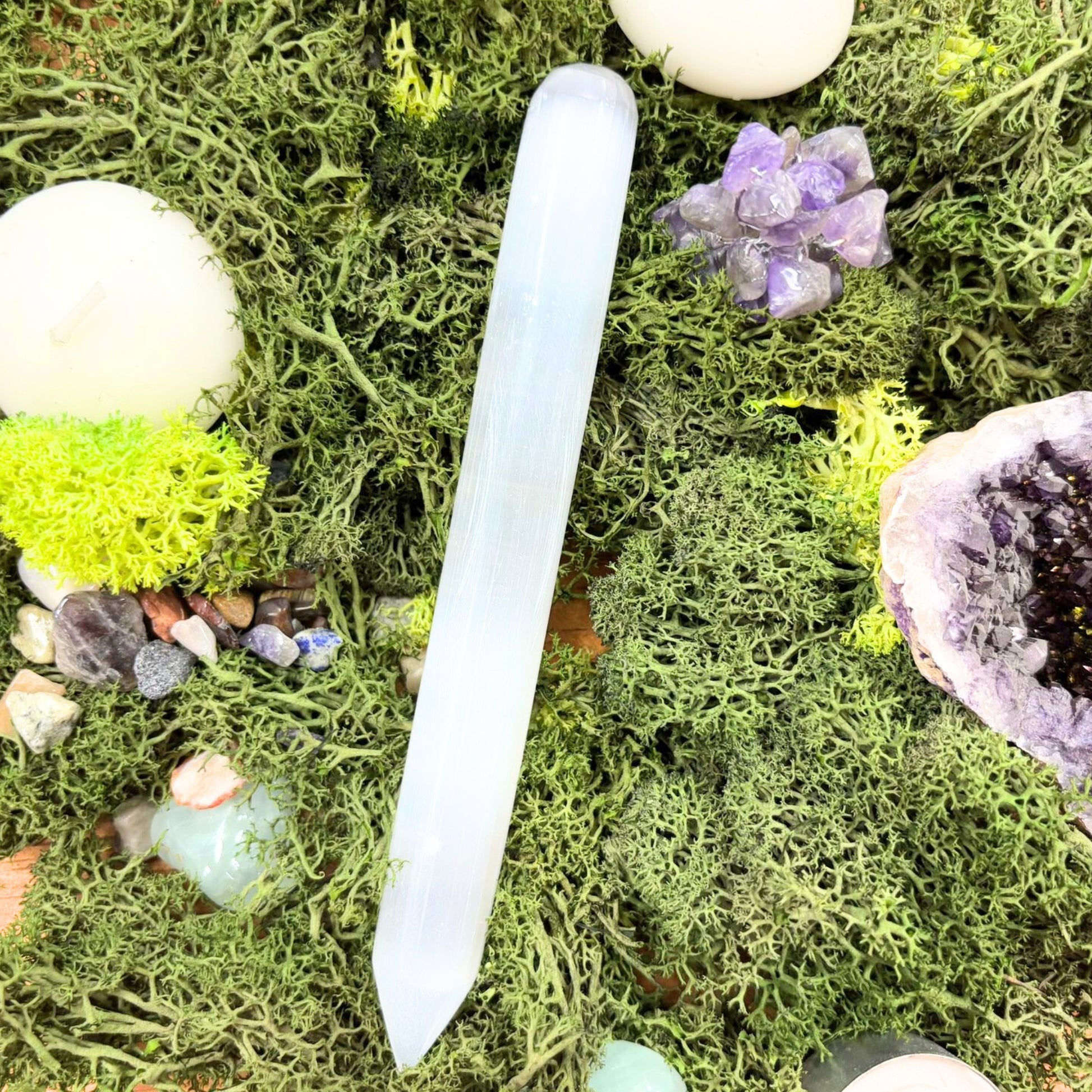 Varita de selenita - 16 cm (Ambos extremos punta)