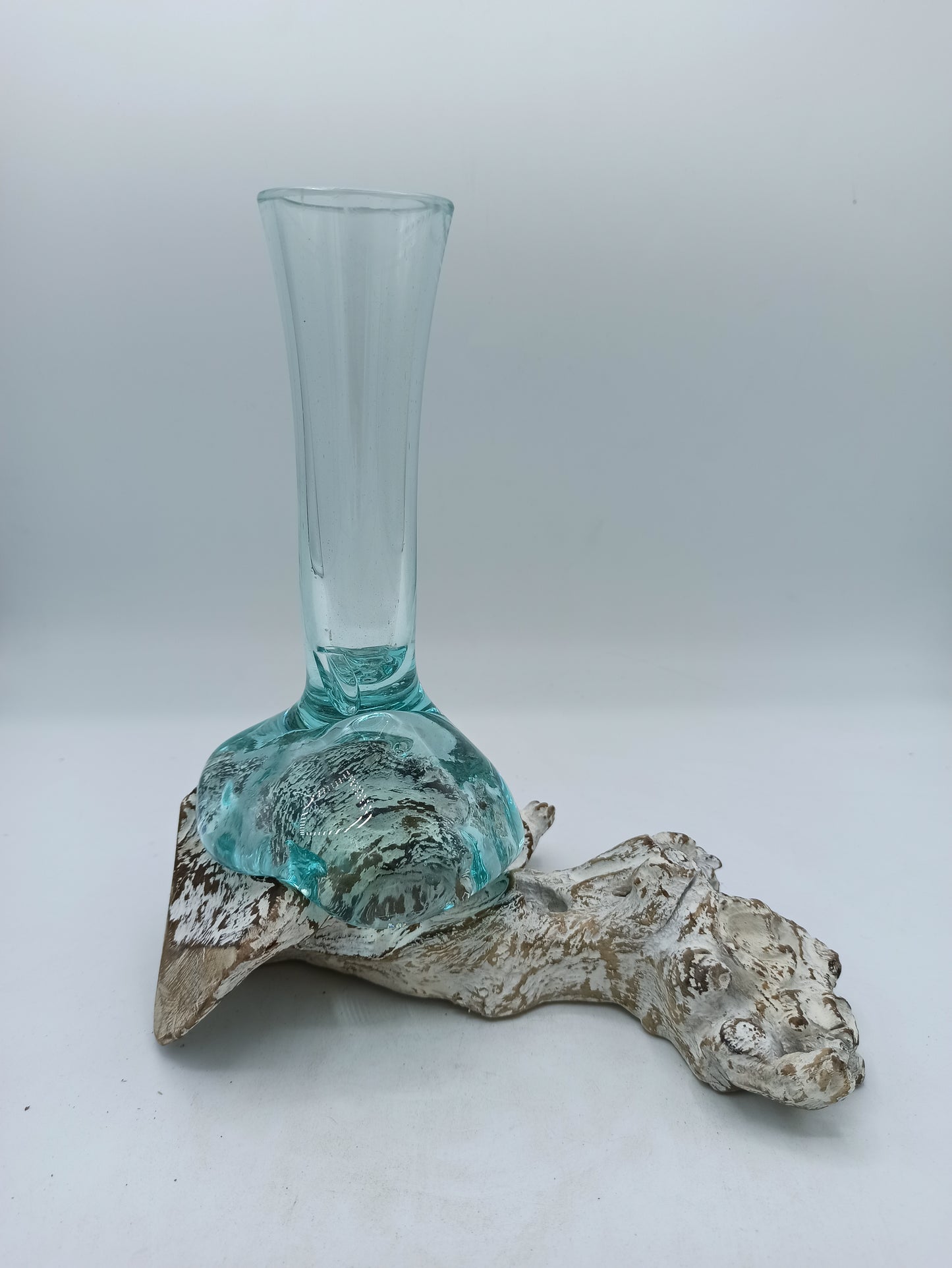 Vidrio fundido sobre madera blanqueada - Florero - Mediano